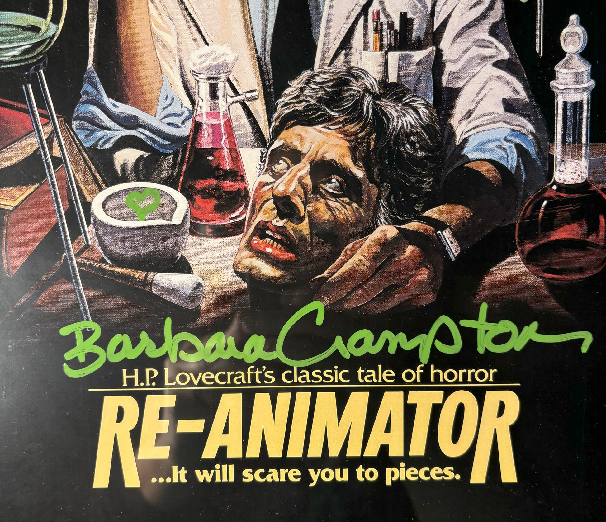 This poster, a recreation of the original artwork for Re-Animator (1985), signed by it's two biggest starts. They would go on to appear in several more horror films together.