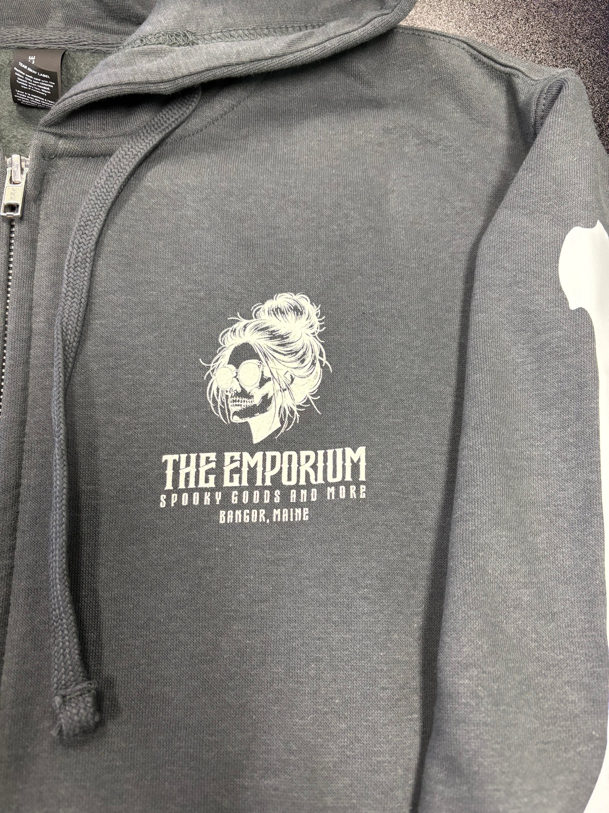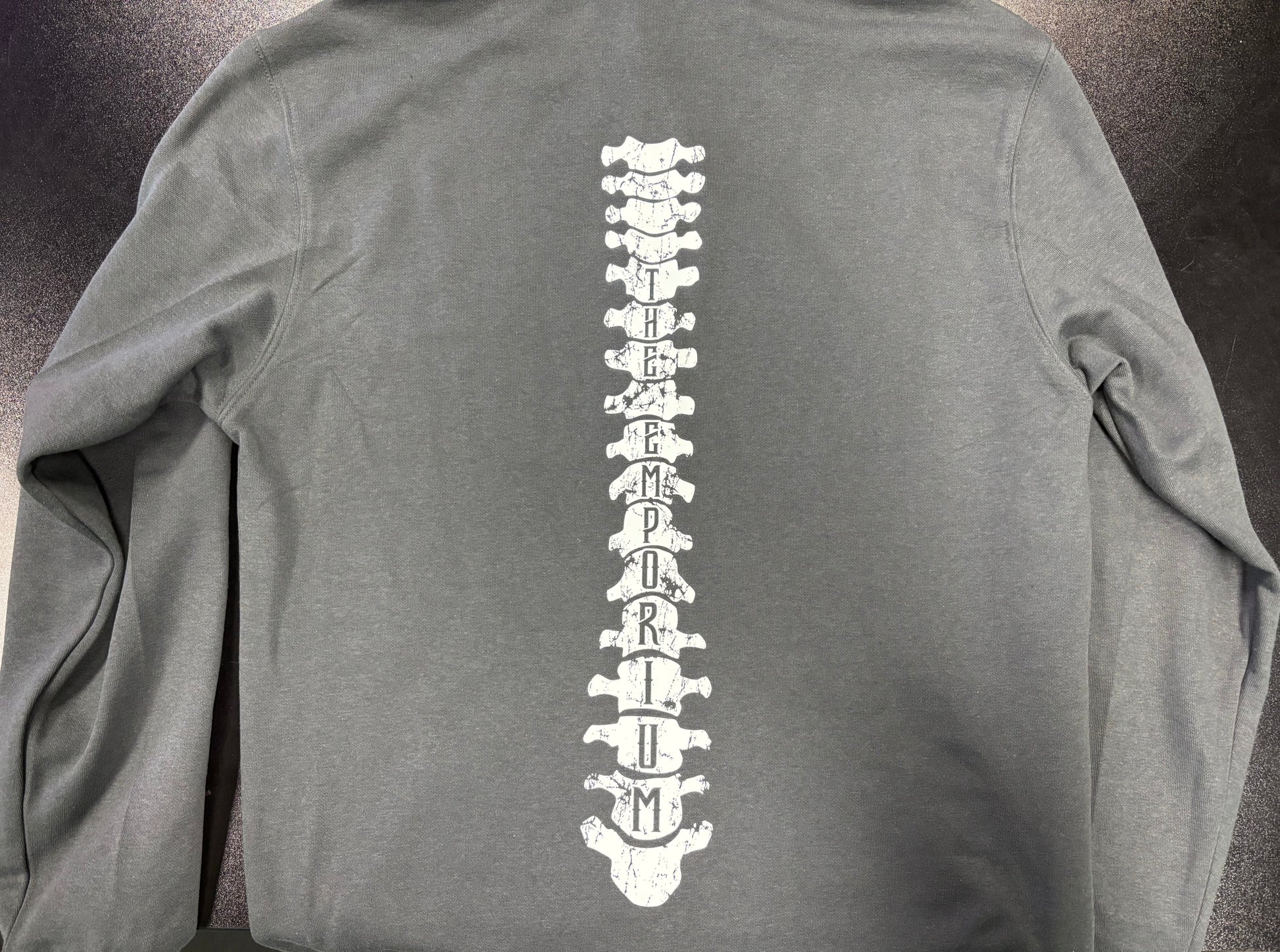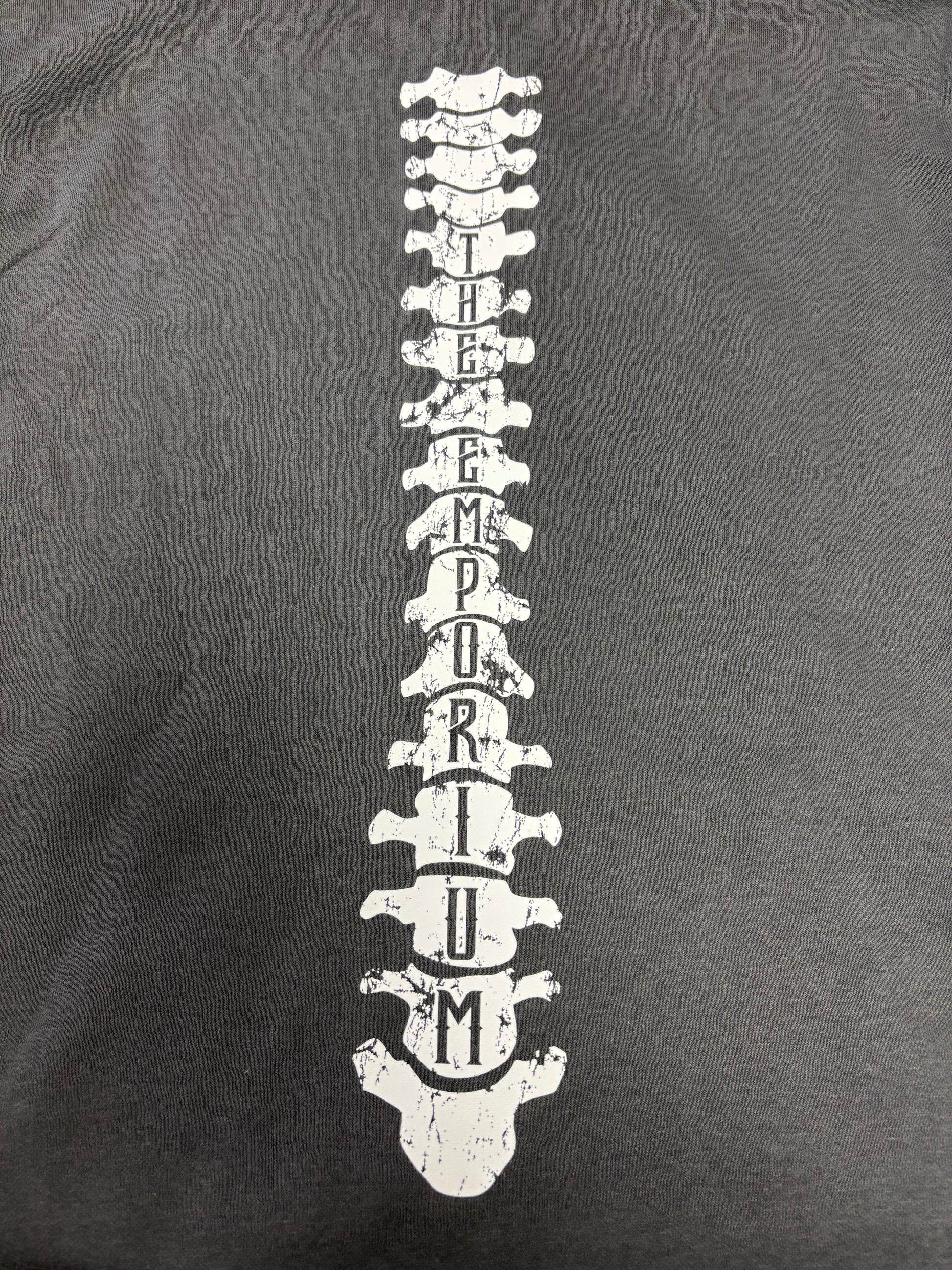 Awesome hoodie featuring our logo with arm bones and a wicked spine design, with "The Emporium" spelled out in the vertebrae.